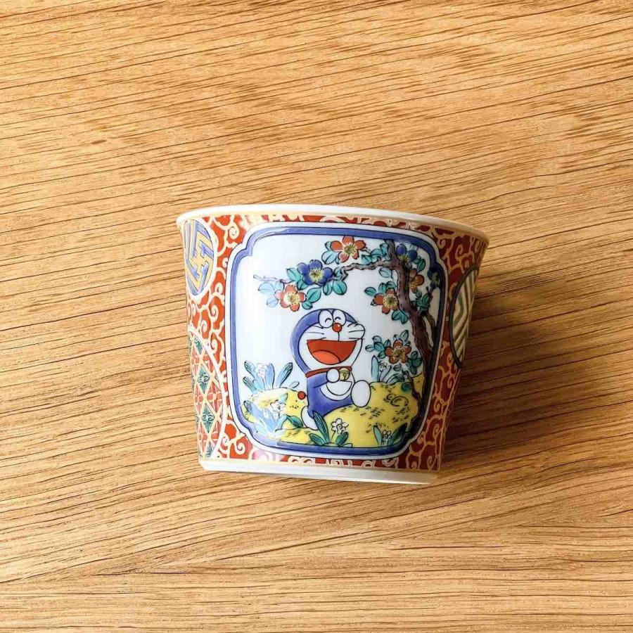 A charming collaboration between traditional Kutani ware and Doraemon in soba choko cups!