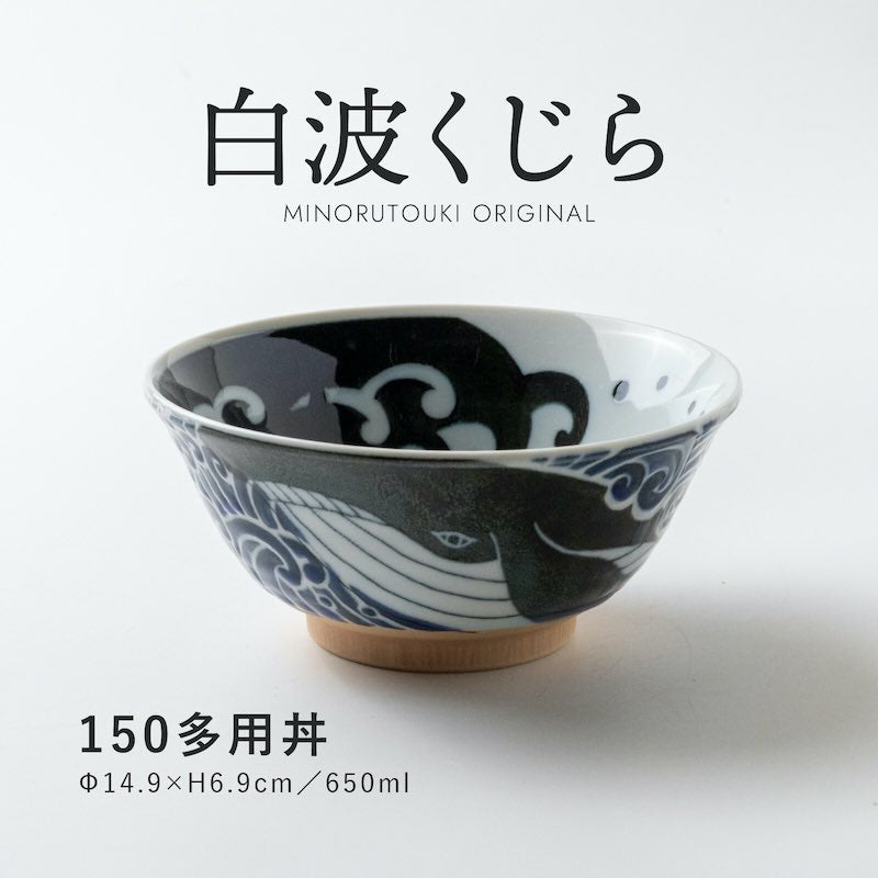 大人気シリーズ「白波くじら」から150多用丼が登場。撥水加工が施してあり、立体的な波模様とインパクトのあるくじらが大胆に描かれた特徴的なデザイン。