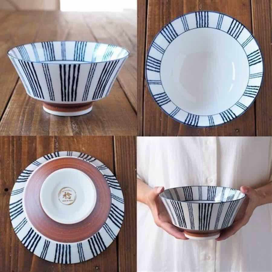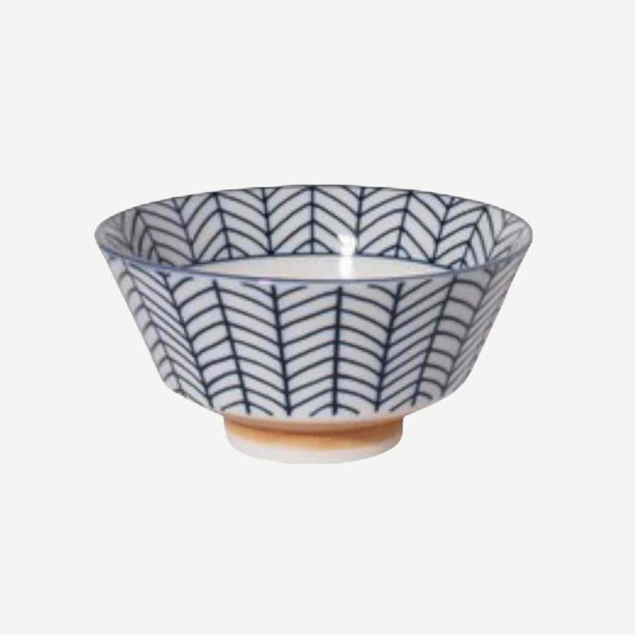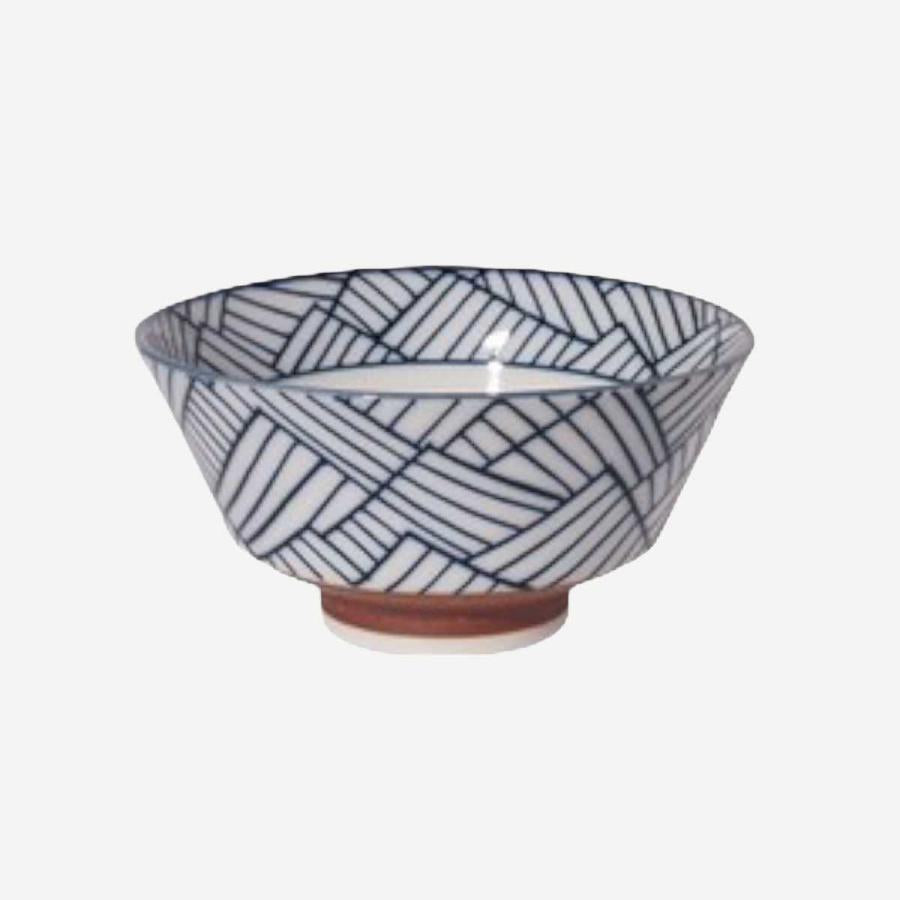 いつもの食卓を楽しむために皆様にとって身近なテーブルウェアになるように。持ちやすい反型の茶碗に染付で和柄をつけました。白地に映える深いブルーはシンプルながらとても風合い良く、下の部分に巻いた錆(サビ)が全体をしめてくれています。